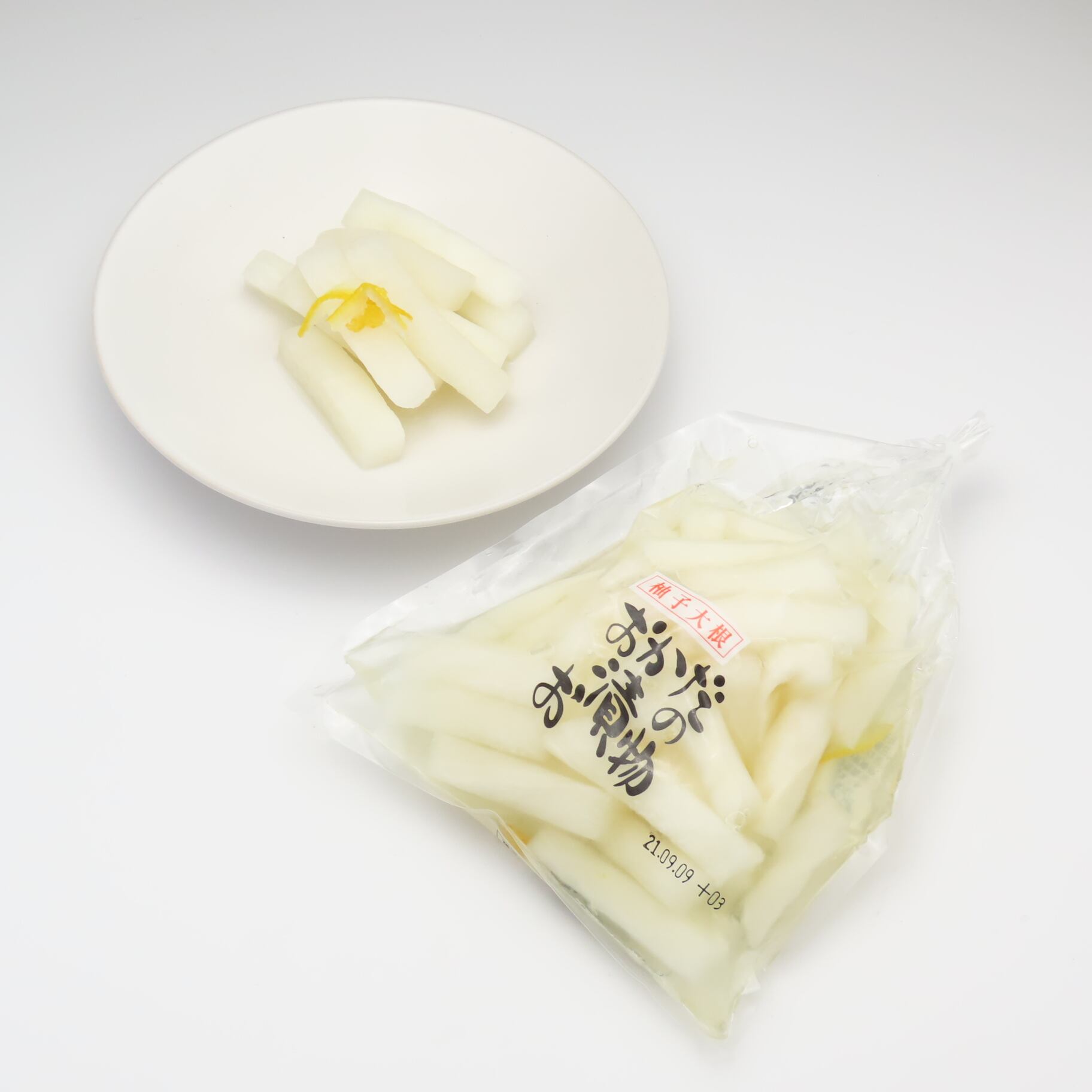 拍子切りした国産大根に柚子を加えて、甘酸っぱく仕上げた浅漬けです。
