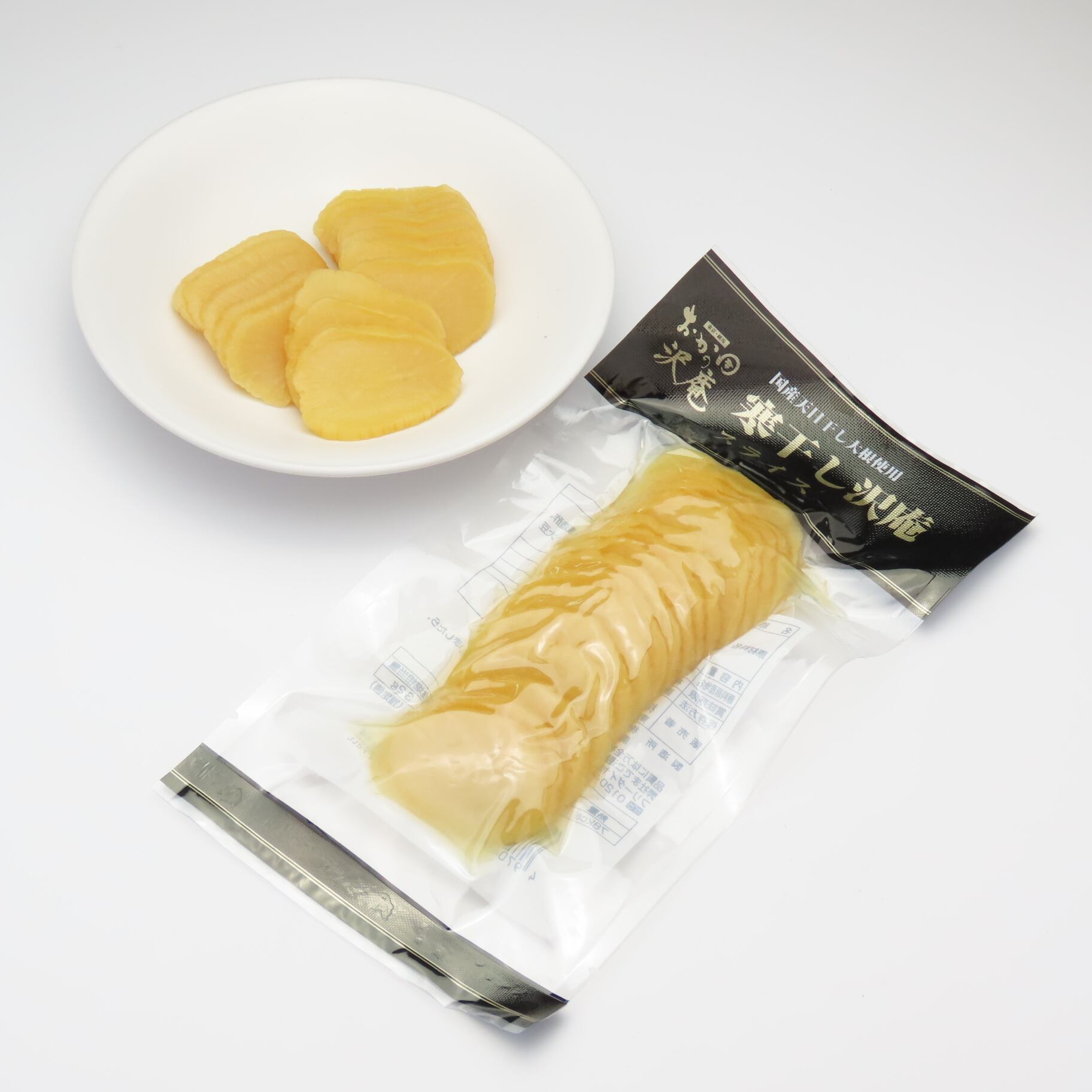 南九州産の大根を天日で干しあげ、添加物を使用せず、ぬか漬けした沢庵漬けです。