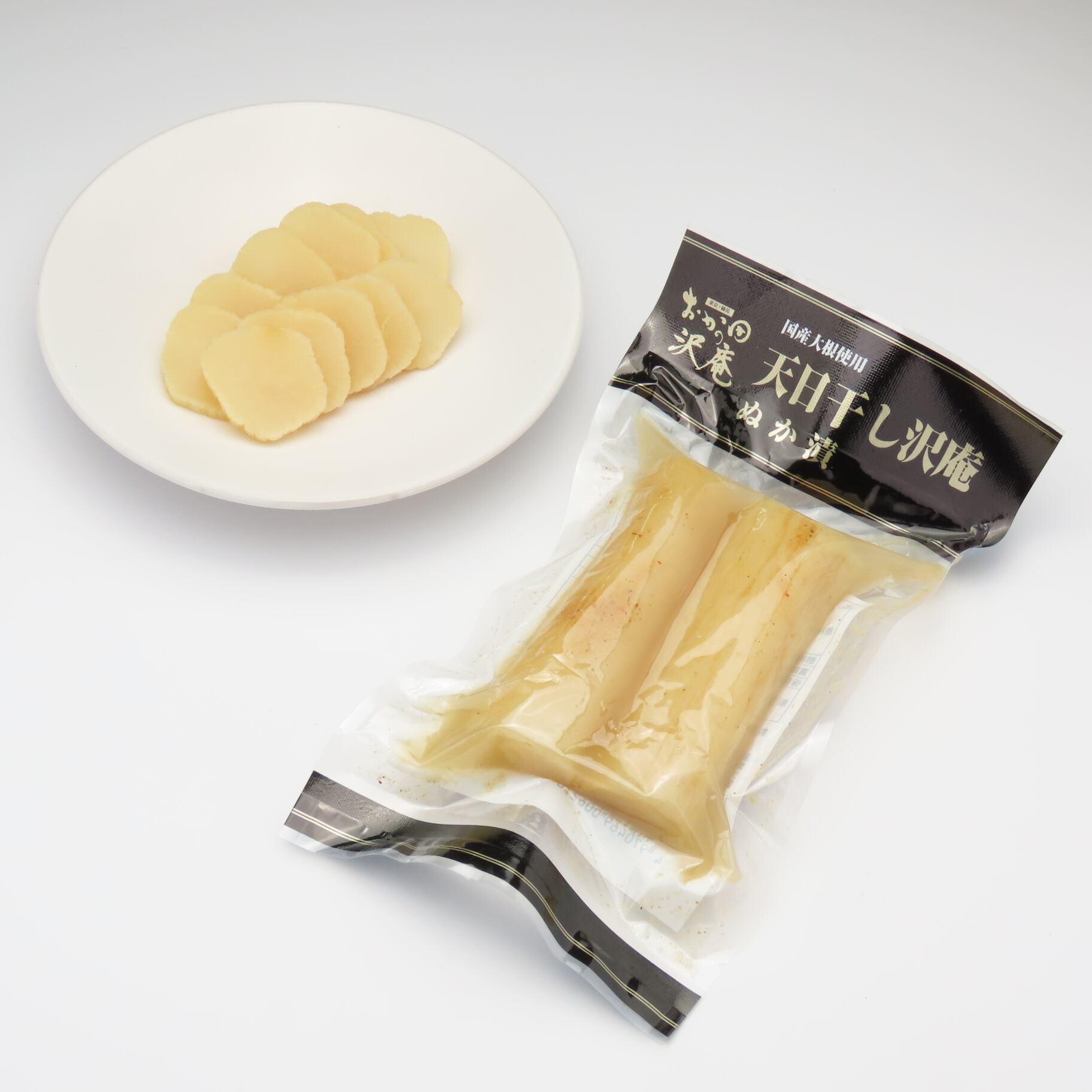南九州産の大根を天日で干しあげ、添加物を使用せず、ぬか漬けした沢庵漬けです。