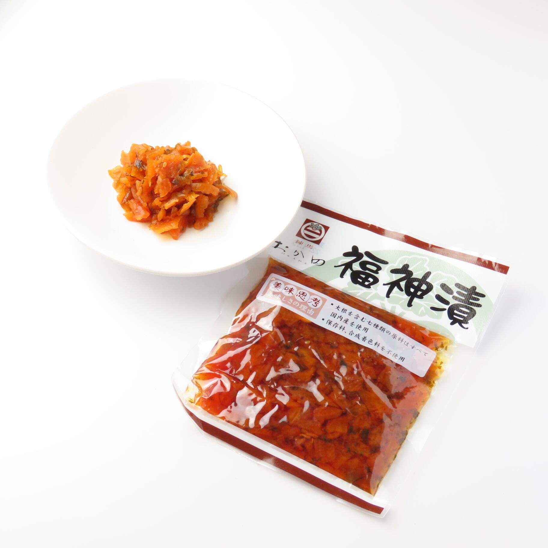 国産の七種類の原料に、合成保存料、合成着料料を使用せず漬け込んだ福神漬です。